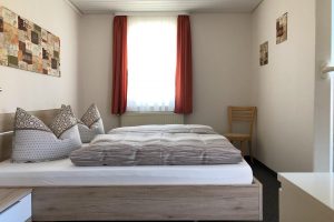 - ein Schlafzimmer mit Doppelbett und der Möglichkeit ein Kinderbett zu stellen.