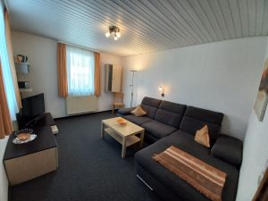 - gemütlich eingerichtetes Wohnzimmer mit Kabel-TV und Schlafcouch.