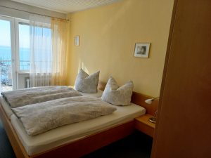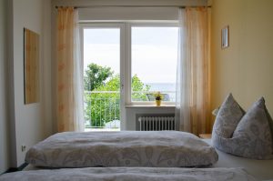 - ein schönes Schlafzimmer mit Balkon direkt zum See