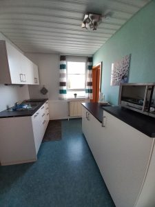 - eine Küchenzeile mit 2 Plattenherd und Spülmaschine, Mikrowelle mit Grillfunktion (Eierkocher, Toaster, Wasserkocher und Kaffeemaschine sind vorhanden)